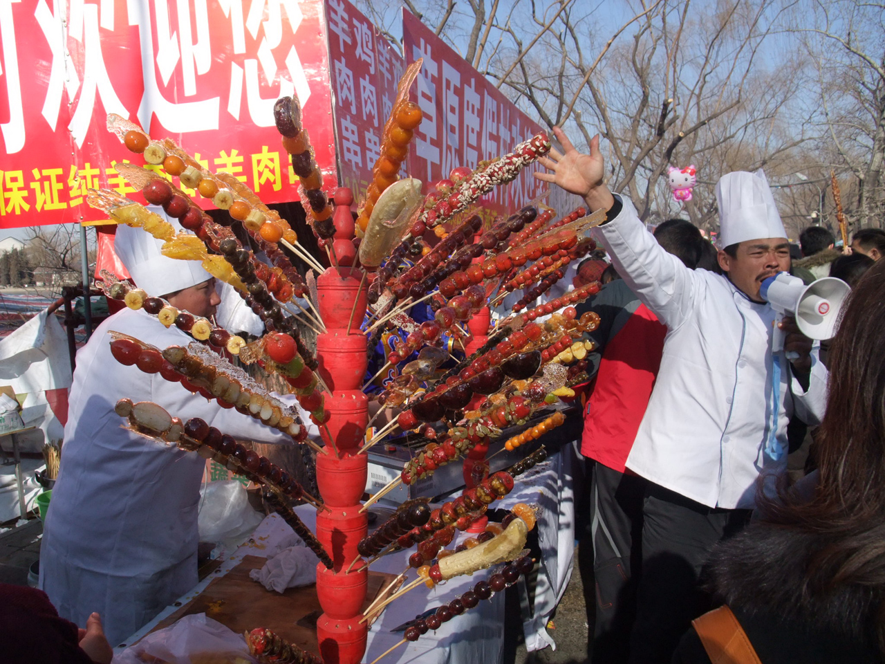 ほかには蚕やサソリ、蜘蛛なんかも串刺しにして売っています。